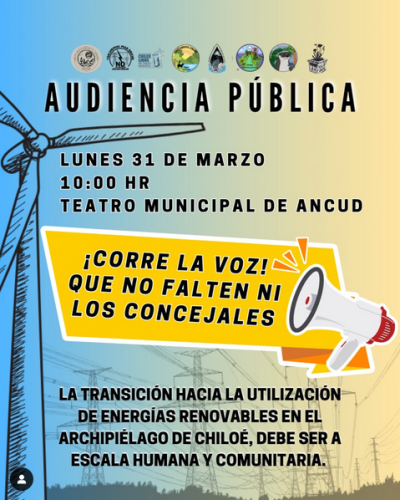 📣 ¡CHILOTA! ¡CHILOTE!📣 En Ancud y todo Chiloé enfrentamos un momento crítico para nuestro futuro. La inminente construcción de la carretera eléctrica habilitará la ejecución de un gran número de mega-proyectos energéticos en la provincia (complejos eólicos, grandes líneas de transmisión y subestaciones). Estos proyectos energéticos no representan beneficios para el territorio e implican una amenaza a nuestras aguas, humedales, bosques nativos, turberas, redes hidrográfica, comunidades, paisajes, sistemas de vida y, junto con eso, a las actividades locales asociadas como el turismo, la pesca artesanal, la agricultura, la salud, la educación, las expresiones culturales, la investigación, y la conservación entre otras.